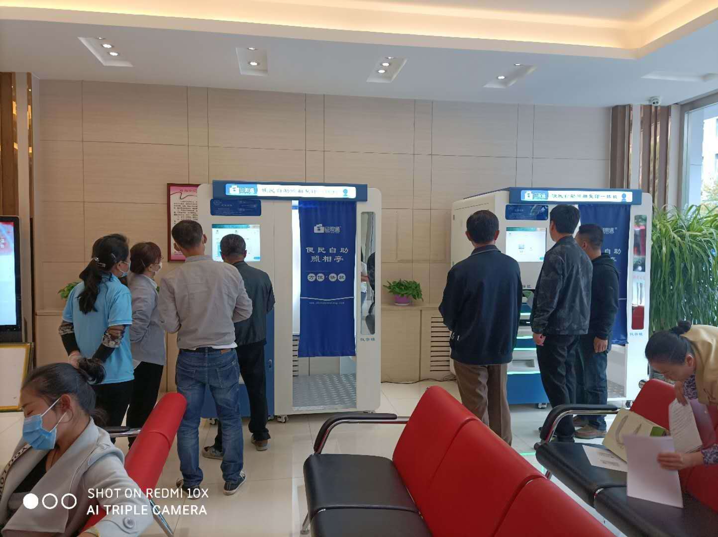 1、群众通过阅读张贴在机器外面的照片拍摄须知,机器正面有梳妆镜,整理好发型、头饰、衣服,然后进入拍照机内;